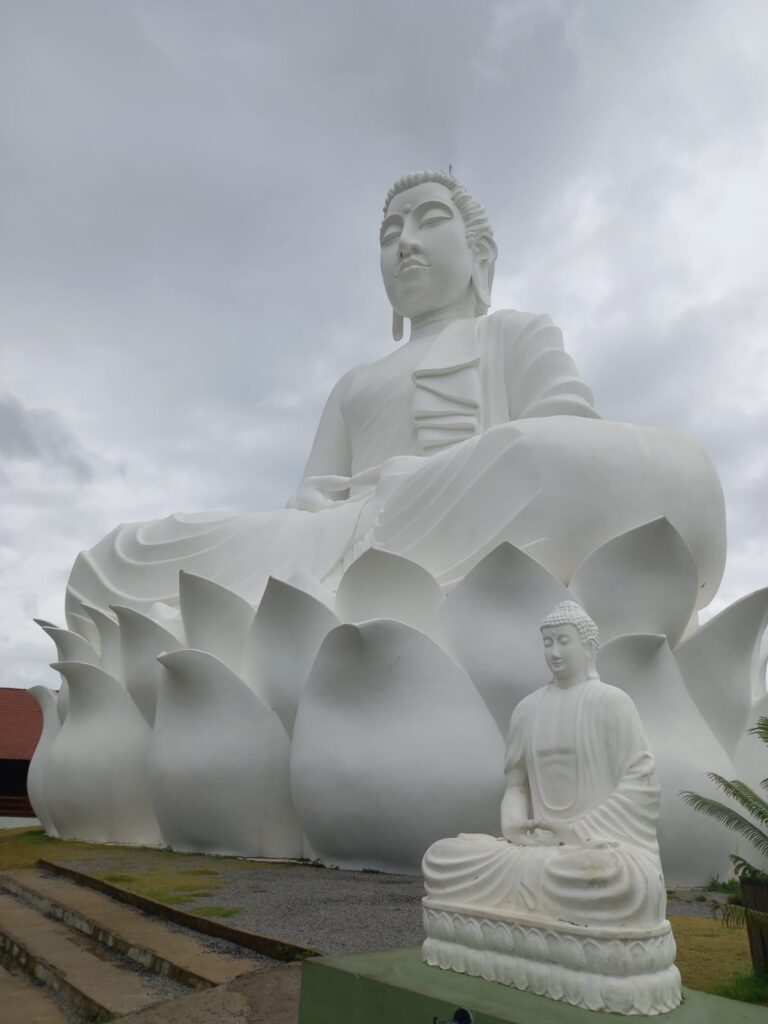 Com mais de 30 metros de altura, ele se impõe de forma serena sobre a paisagem, criando um contraste poderoso com a natureza do entorno.
