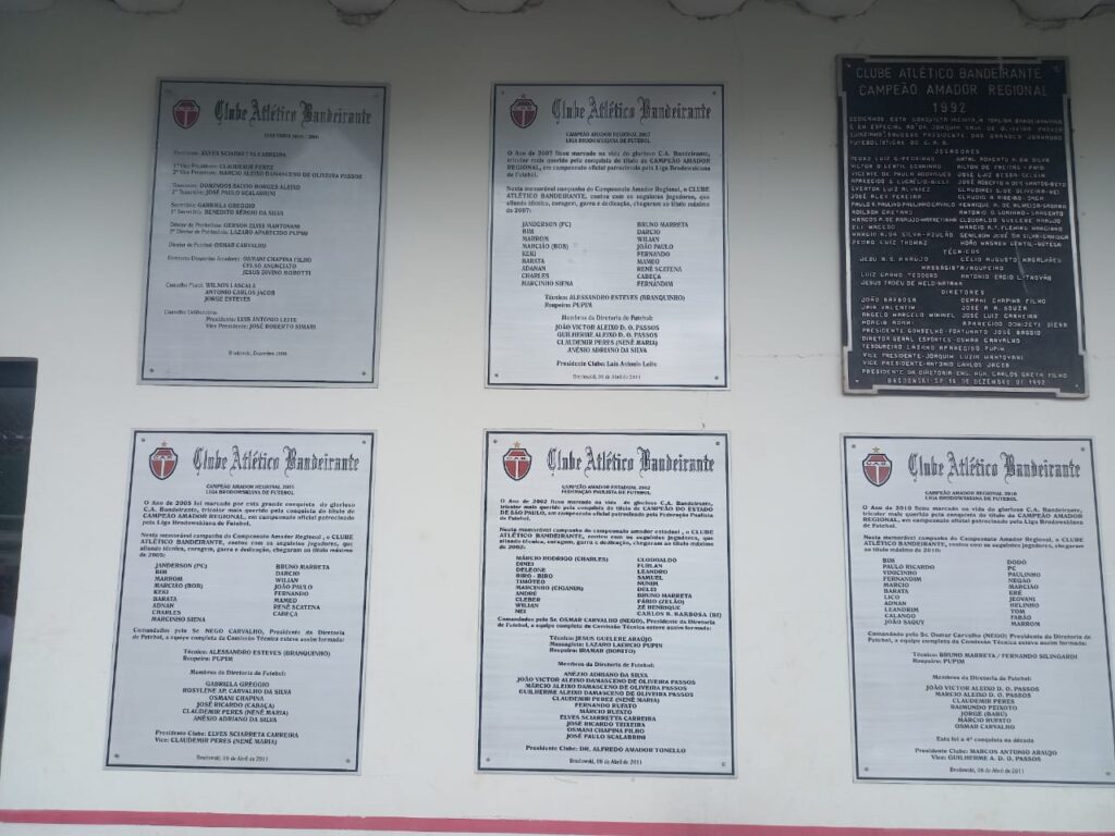 Interessante como o pessoal do Bandeirante conseguiu registrar sua história em fotos, lembranças e até mesmo nessas placas que pouco a pouco relembram cada passo do clube!
