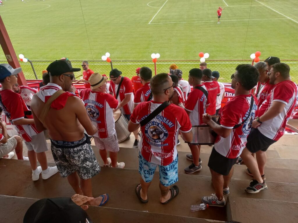 A torcida do União FC também se fez presente e ficou em um espaço com sombra!