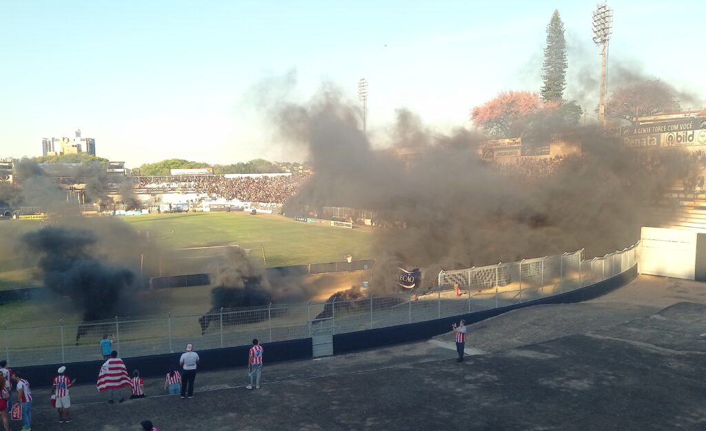 A torcida organizada do Londrina EC ainda não havia chegado, apenas o chamado “torcedor comum” já estava presente para acompanhar a entrada dos times.