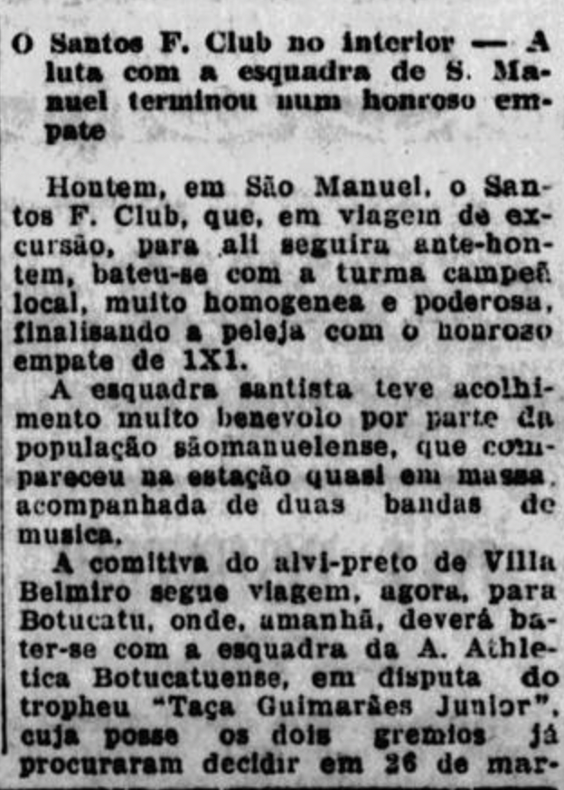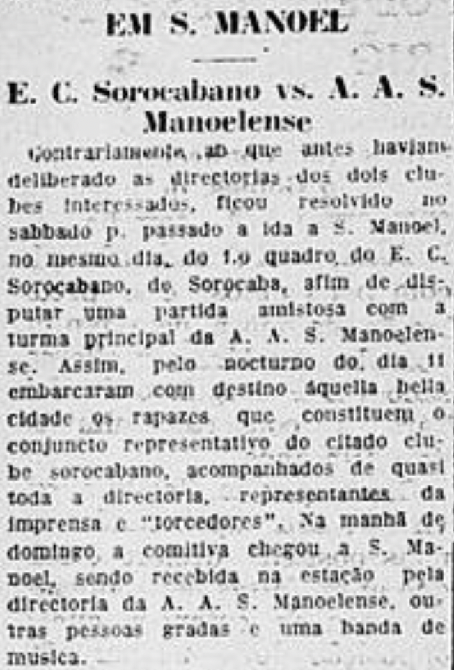 E também encontrei essa matéria do jornal “A Cigarra” de 1924 sobre um amistoso com o SC Corinthians.
