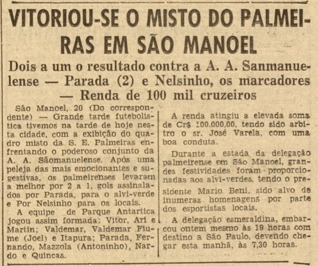 Em 1957 rolou até um amistoso com o Palmeiras:
