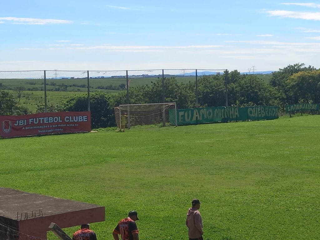 O campo está bem conservado, tem até um sistema de iluminação e uma arquibancada coberta.