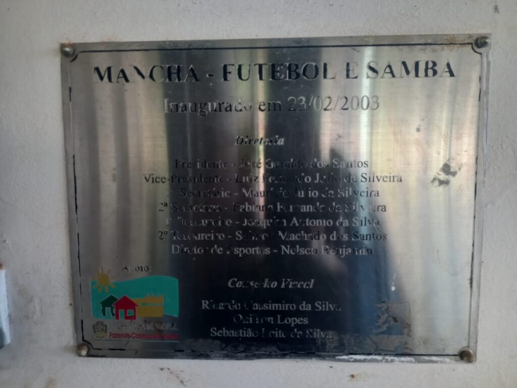 Ao menos dava pra ver uma placa celebrativa. Mas ela só me deixou em dúvida. A placa não diz se é sobre a inauguração, mas sua data é de 1982… O que me leva a perguntar se existiu um outro estádio na época do profissionalismo, ou se a placa é apenas de alguma reforma…