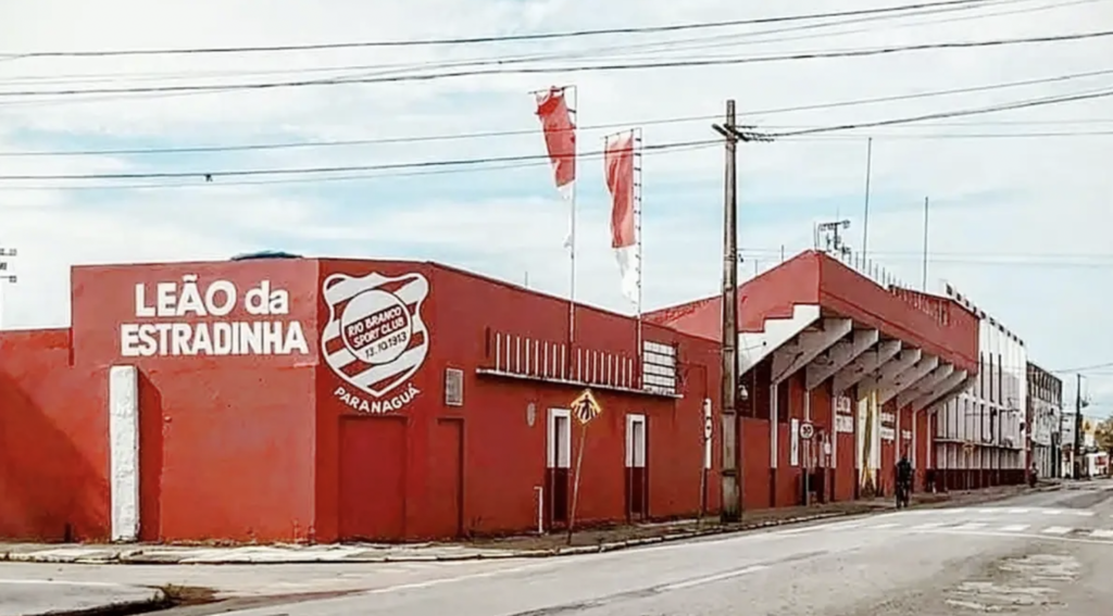 Ali dá pra ver a arquibancada coberta e o gol do lado esquerdo: