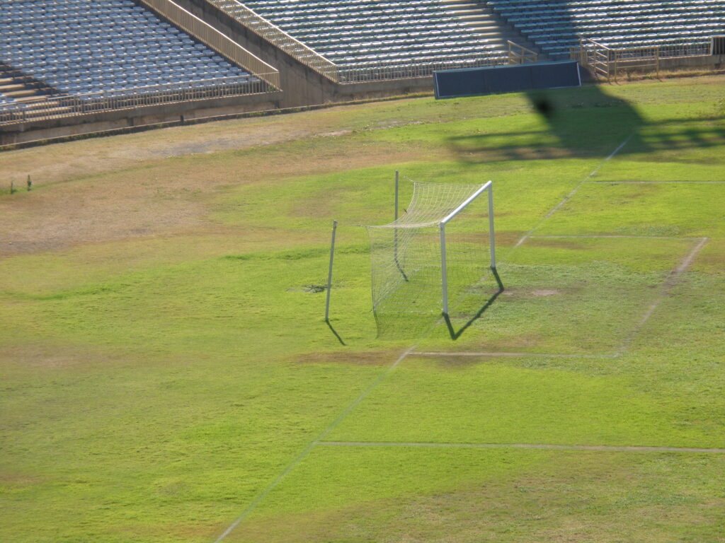 Lá de cima do morro, pude fazer o registro do campo do Colorado, começando pelo gol do lado esquerdo, onde ao fundo erguem-se os bairros vizinhos, como a Vila Suiça.