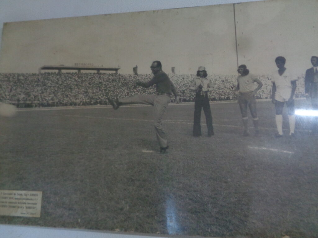 Tem até uma foto dele batendo um penalty na inauguração do estádio.