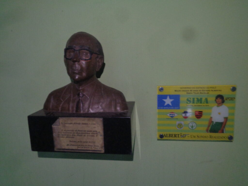 Esse busto do Governador Alberto Tavares Silva está na parte interna do estádio.