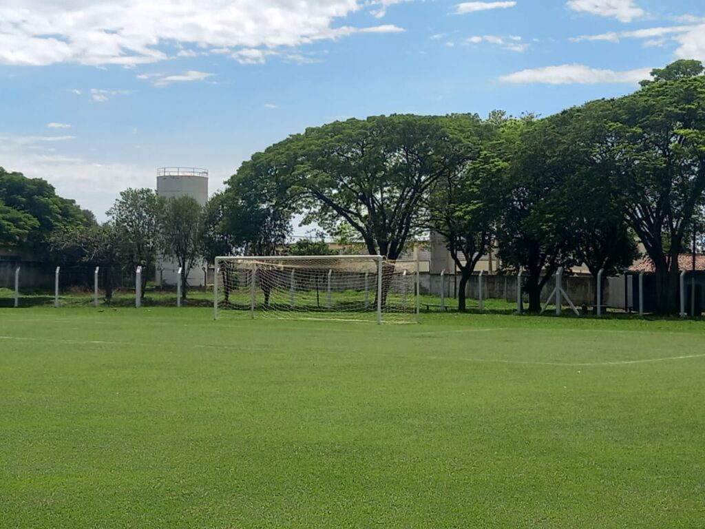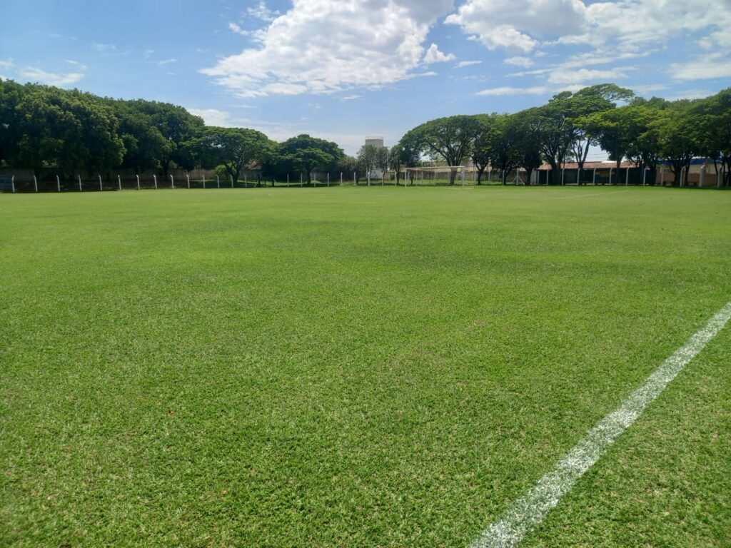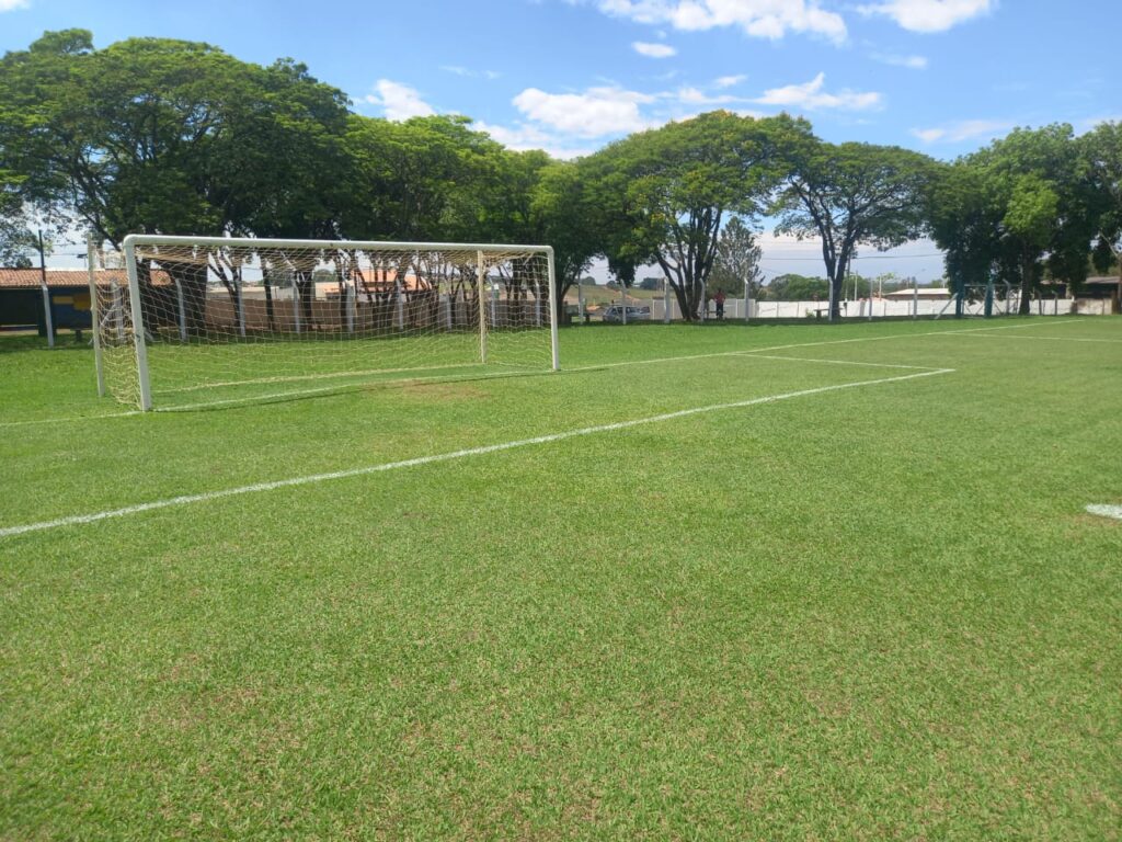 O gol da direita mostra como o gramado está em perfeitas condições: