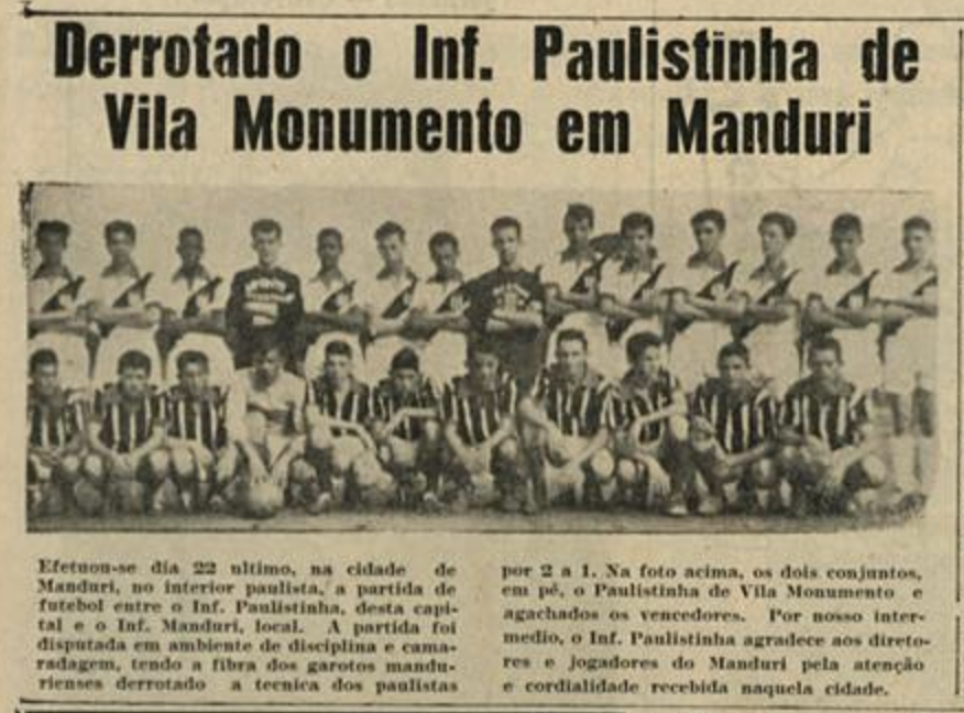Também encontrei uma notícia sobre um amistoso de 1956, contra o Paulistinfa: