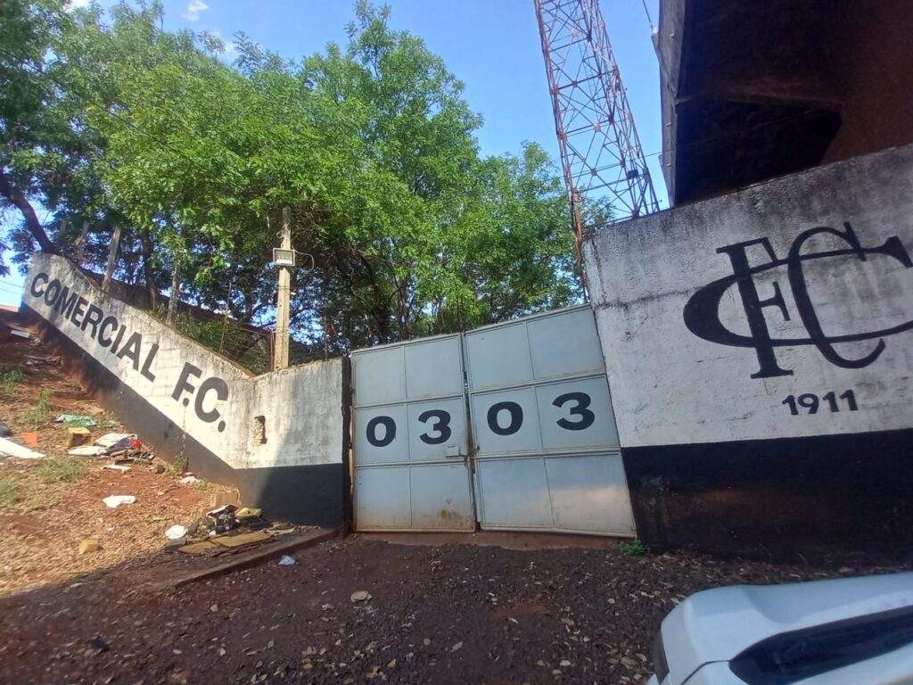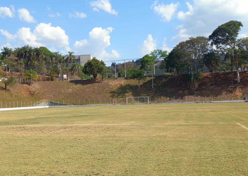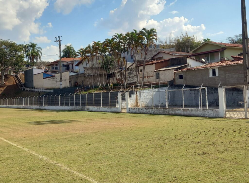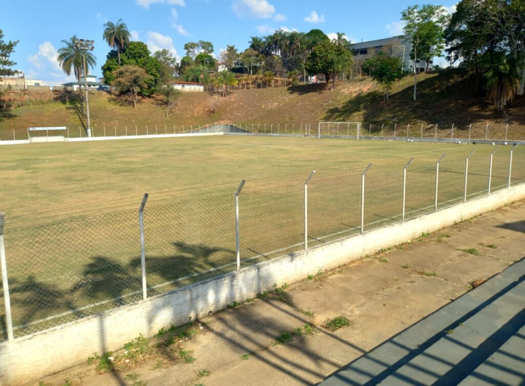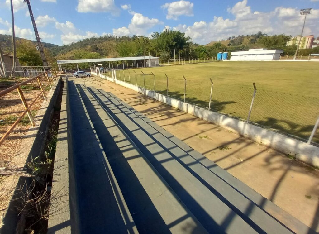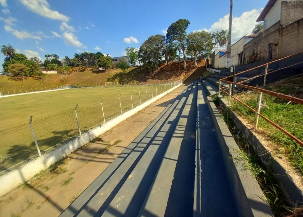 Ao lado do campo, uma área onde possivelmente ficava a antiga arquibancada de madeira.
