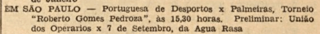 Mas, fuçando um pouco pelos jornais, encontrei alguns registros de aventuras do time como aqui, em 1955, fazendo o jogo de abertura de um Portuguesa x Palmeiras: