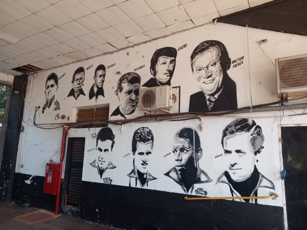 Voltando a falar sobre os objetos históricos dispostos ali internamente, vale citar os troféus, os quadros com os presidentes e fotos históricas, muito bonitas, como a do antigo estádio!