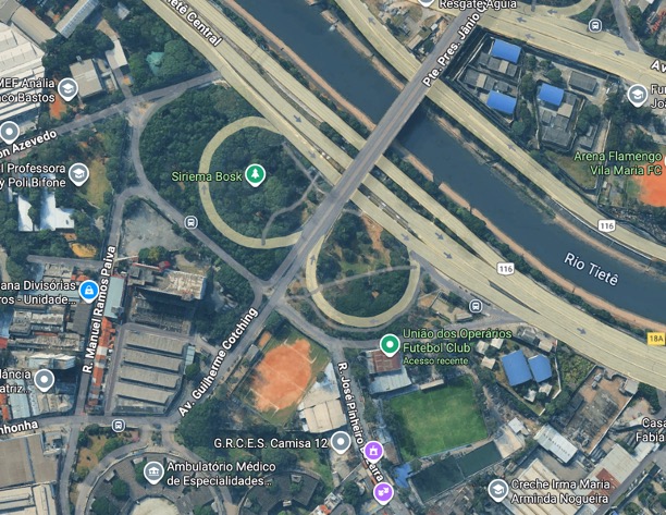 Veja o mapa atual e perceba ue apenas o campo da Camisa 12 segue ali abaixo do Estádio do União dos Operários FC.