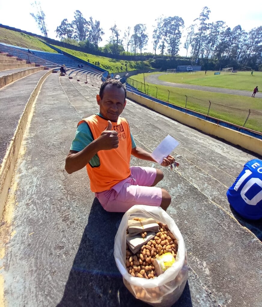 Atendendo a galera nos comes e bebes, lá estava o Edson, o “Gaguinho” do Amendoim.