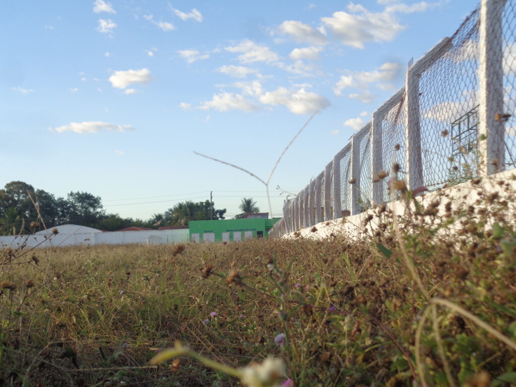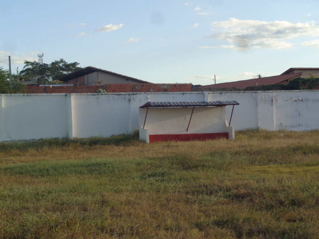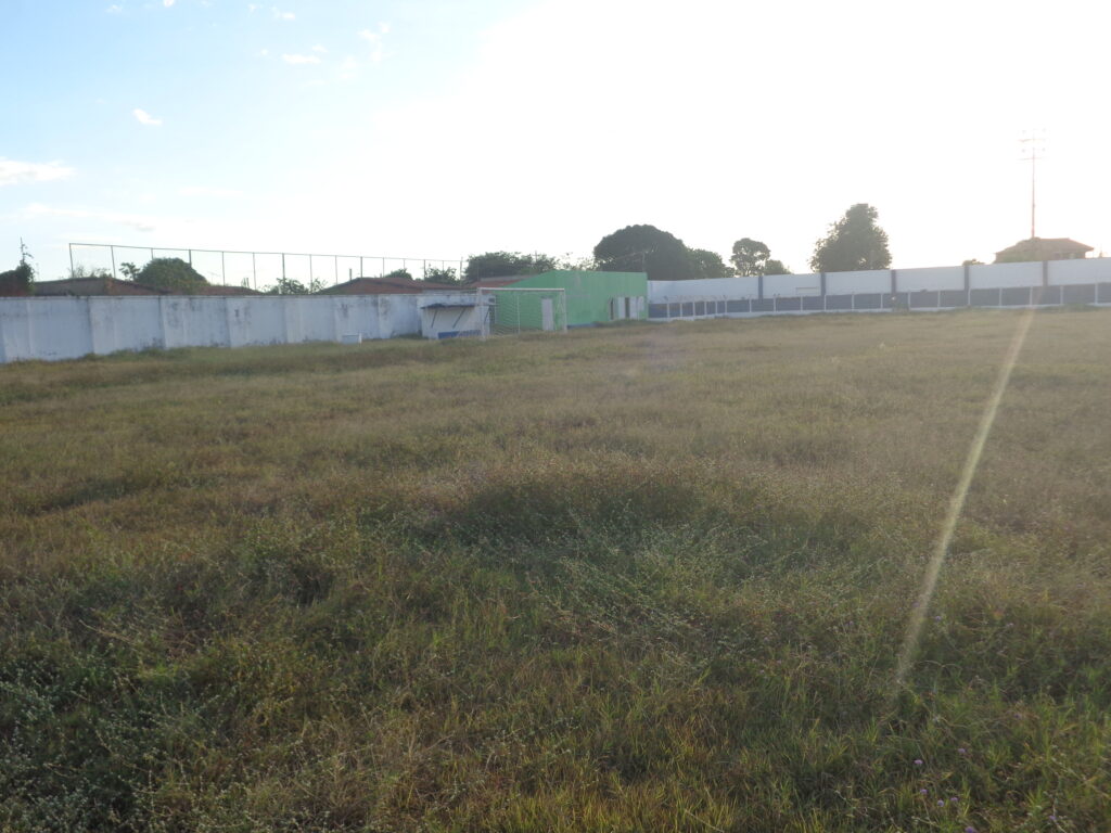 Ao lado do campo, uma área onde possivelmente ficava a antiga arquibancada de madeira.
